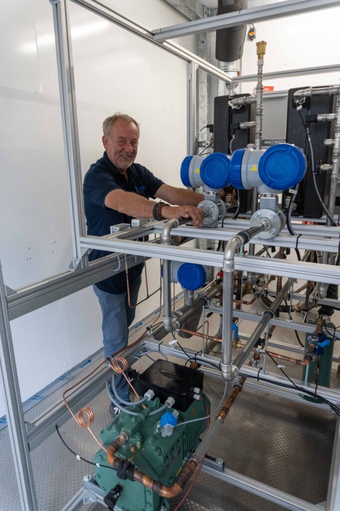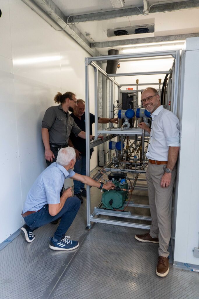 Am 26. Juni wurde im Rahmen des EnerNET-Workshop „Versuche an der Propan Kälteanlage“ die neue Propankältemschine des iwe eingeweiht und vorgestellt. Die Arbeitsgruppe von Prof. Dr.-Ing. Thomas Schlosser erläuterte den interessierten Teilnehmern des Workshops die technischen Details der Anlage sowie der verbauten Messtechnik. Nach Fertigstellung der Anlage steht diese für weitere Forschungs- und Entwicklungsprojekte im Bereich der Kältetechnik und im speziellen mit dem Kältemittel R290 (Propan) zur Verfügung.