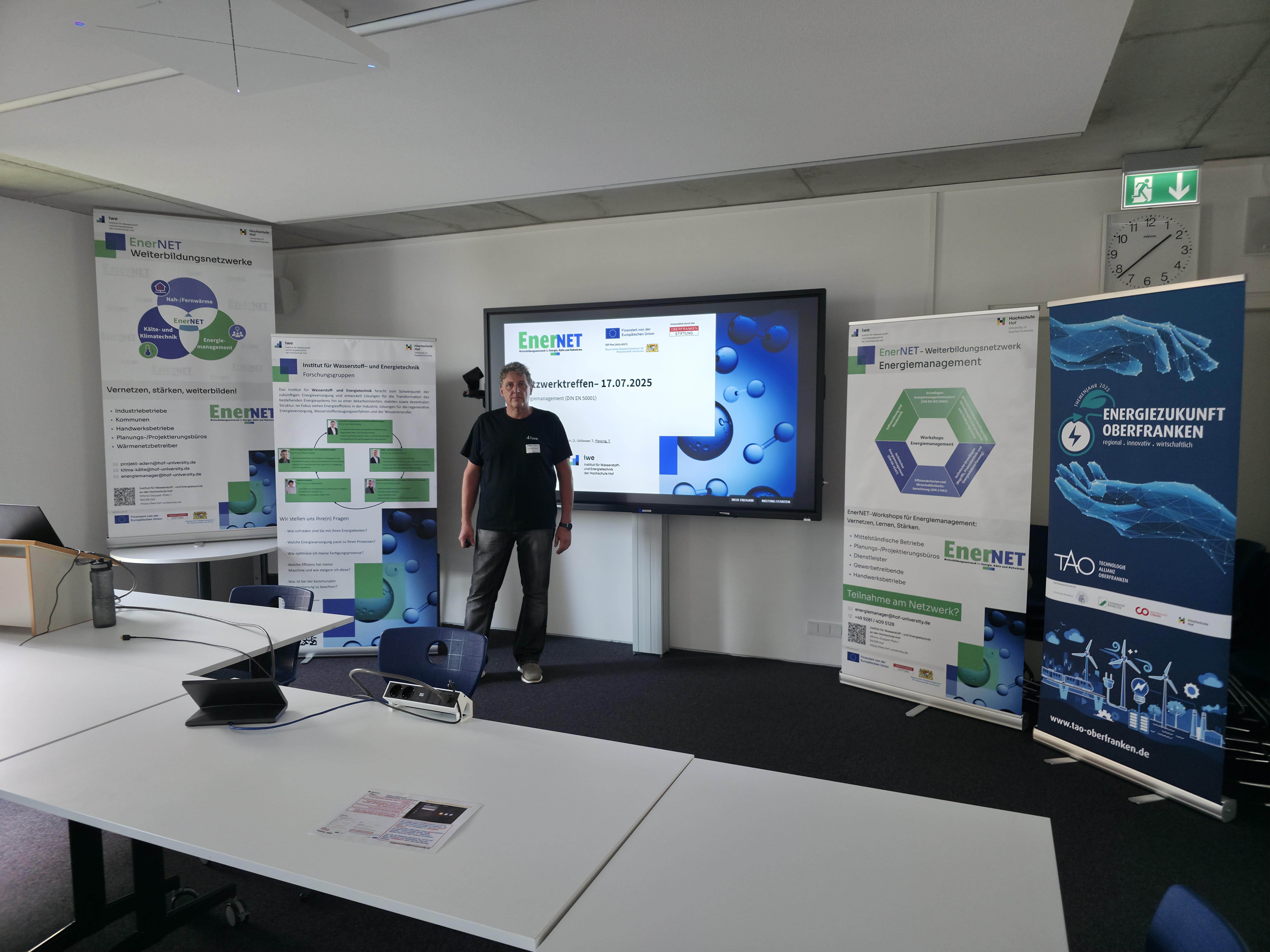 Am 17. Juli 2025 von 14 bis 19 Uhr fand das zweite Netzwerktreffen des Projekts EnerNET im Bereich Energiemanagement statt. Gastgeber und Organisator war das Institut für Wasserstoff- und Energietechnik (iwe) der Hochschule Hof. Das Projekt EnerNET wird vom iwe geleitet und besteht aus den drei Einzelnetzwerken Nah- und Fernwärme, Klima- und Kältetechnik sowie Energiemanagement.