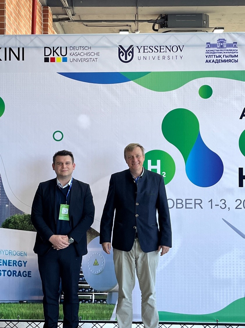 Prof. Dr.-Ing Tobias Plessing und Anton Sack nahmen als Vertreter des Instituts für Wasserstoff- und Energietechnik der Hochschule Hof vom 1. bis 3. Oktober an dem Aktau Dalogue Green Hydrogen in Kasachstan teil. Der Aktau Dialog in Kasachstan brachte Wissenschaftler, Politiker und Unternehmer zusammen, um über die Zukunft nachhaltiger Energien zu beraten. Im Mittelpunkt stand die Entwicklung von grünem Wasserstoff, der als Schlüsseltechnologie für die Energiewende gilt. Kasachstan präsentierte sich als potenzieller Produzent und Exporteur, während deutsche Partner ihr Know-how einbrachten. Neben Energiefragen wurden auch ökologische Herausforderungen des Kaspischen Meeres diskutiert. Die Konferenz unterstrich die Bedeutung internationaler Zusammenarbeit für eine klimafreundliche Zukunft.