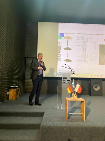 Im Anschluss folgte eine Reihe informativer Vorträge, welche die verschiedenen Aspekte der Wasserstoffinfrastruktur beleuchteten. Unter anderen stellte Dr.-Ing. Andy Gradel als ehemaliger stellvertretender Institutsleiter des iwe von der BtX energy GmbH innovative Verfahren zur Herstellung von Wasserstoff aus Biomasse und Biogas vor und beurteilte verschiedene Technologien wissenschaftlich und wirtschaftlich. Darüber hinaus ordnete er rechtliche Rahmenbedingungen, die Zertifizierung von Biowasserstoff und den Weg zum Wasserstoffhochlauf ein.